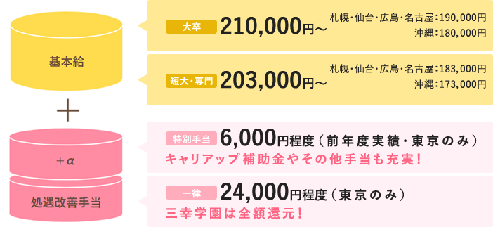 処遇改善 三幸学園では、処遇改善手当を全額還元