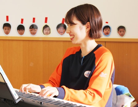 常に明るく楽しくいることを心がけています。保育者が楽しくやっていると子どもも楽しくなるし、毎日楽しく過ごせるようにしています。